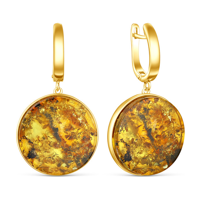 Серьги из золочёного серебра с янтарём 03-802-0120-09
