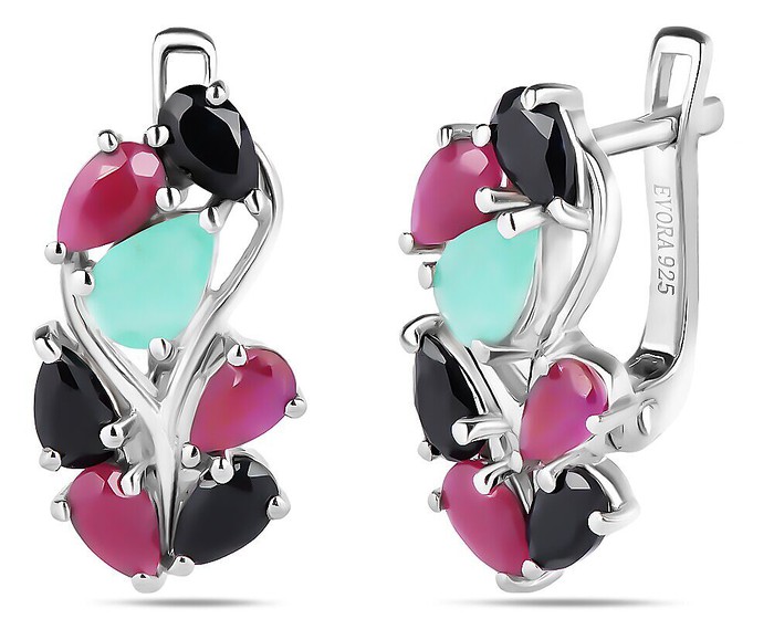 Серьги, арт.658604 Серебро Серебро 925, 4,63 гр., изумруд берилл , рубин корунд , сапфир корунд