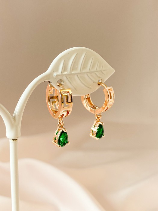 Серьги-колечки "Изумрудные капли" (А1)