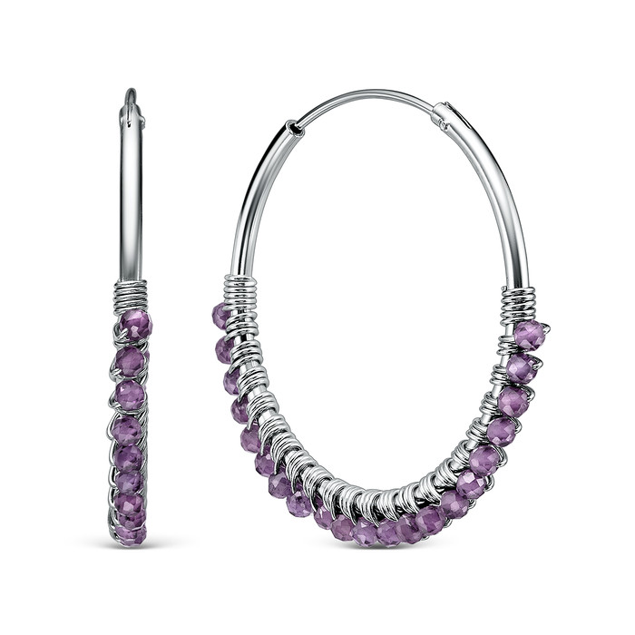 Совместные покупки Каменск-Уральский Ювелирные украшения и бижутерия Серьги — Серьги-конго из серебра с аметистом родированные 925 пробы 14500AMRH