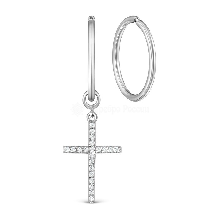 Совместные покупки Каменск-Уральский Ювелирные украшения и бижутерия Серьги — Серьги-конго женские из серебра и фианитами родированные (2 в 1, съёмный элемент