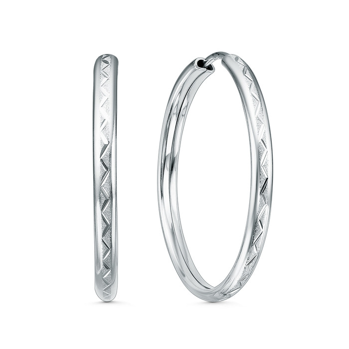Совместные покупки Каменск-Уральский Ювелирные украшения и бижутерия Серьги — Серьги-конго женские из серебра родированные - диаметр 3 см, толщина 3 мм 925 пр