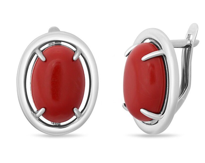 Серьги, арт.656278 Серебро Серебро 925, 4,98 гр., коралл