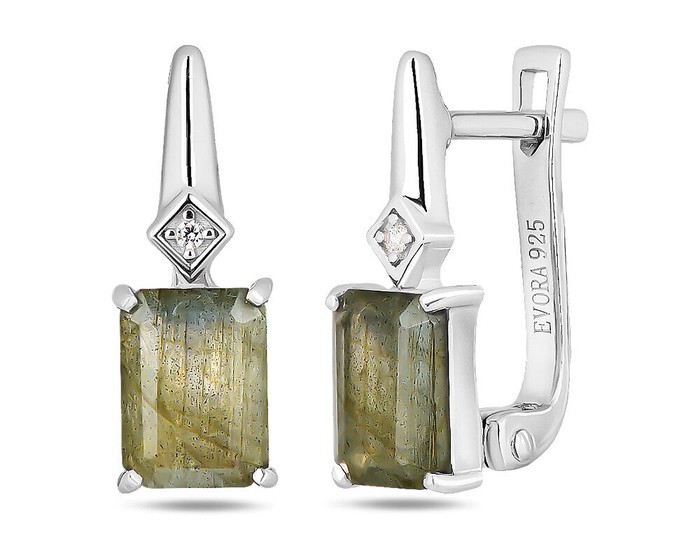 Серьги, арт.658090 Серебро Серебро 925, 3,58 гр., лабрадорит