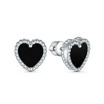 Серьги-пусеты из серебра с чёрным ониксом родированные - Сердца 2-032р442
