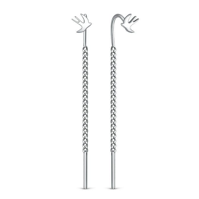 Серьги продёвки из серебра родированные - Ласточки 925 пробы 2-622р
