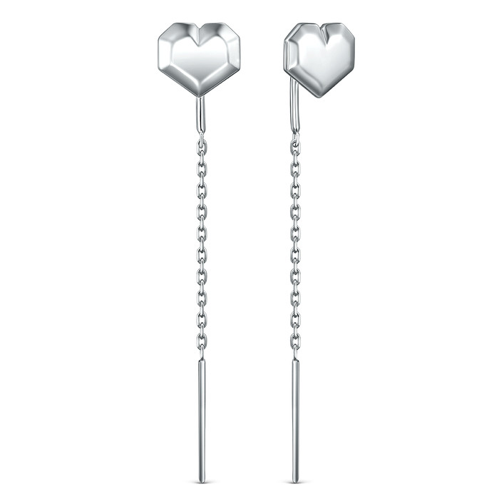 Серьги продёвки из серебра родированные - Сердца 925 пробы 3001029166