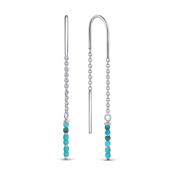 Совместные покупки Каменск-Уральский Ювелирные украшения и бижутерия Серьги — Серьги-продёвки из серебра с бирюзовым хаулитом родированные 925 пробы 15864HTRH