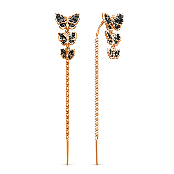 Серьги-продёвки из золочёного серебра с фианитами и родированием - Бабочки 925 п