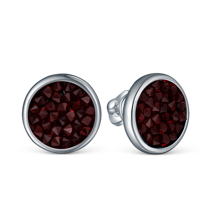 Серьги-пусеты из родированного серебра с красными кристаллами Премиум Австрия 92