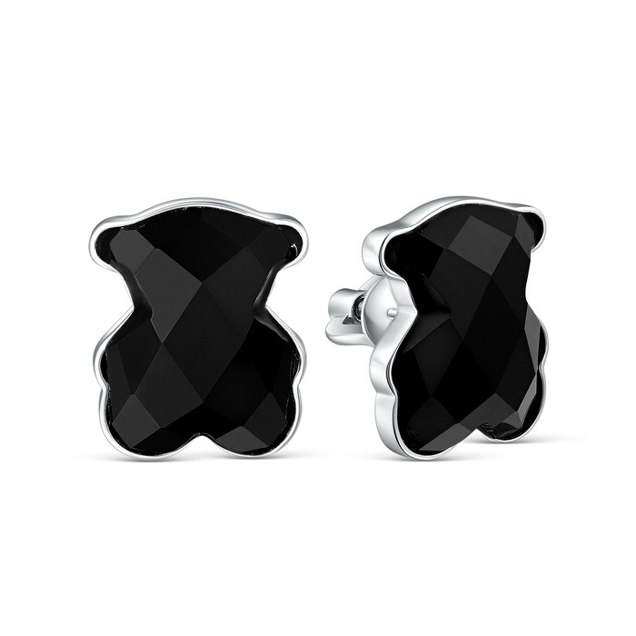 Совместные покупки Каменск-Уральский Ювелирные украшения и бижутерия Серьги — Серьги-пусеты из серебра с агатом родированные - Мишки 925 пробы Ts-15-02Ar