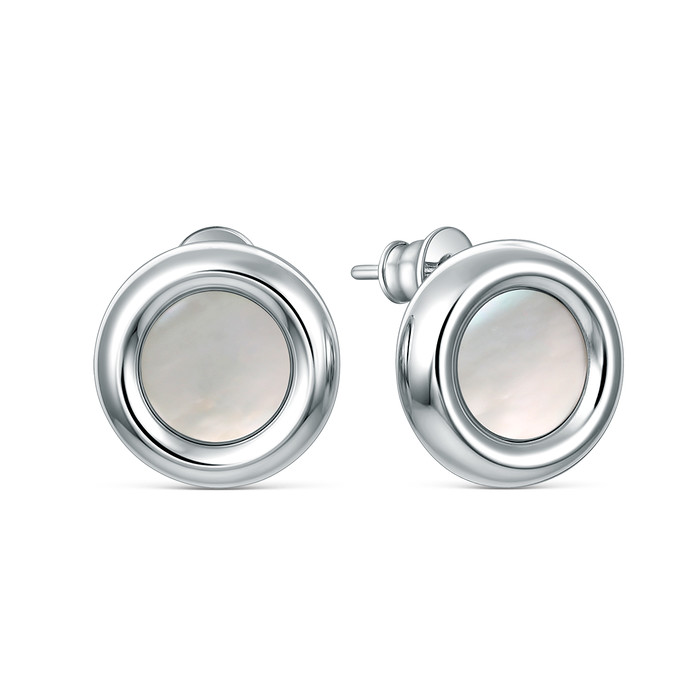 Совместные покупки Каменск-Уральский Ювелирные украшения и бижутерия Серьги — Серьги-пусеты из серебра с белым перламутром родированные 221-10-288-1р