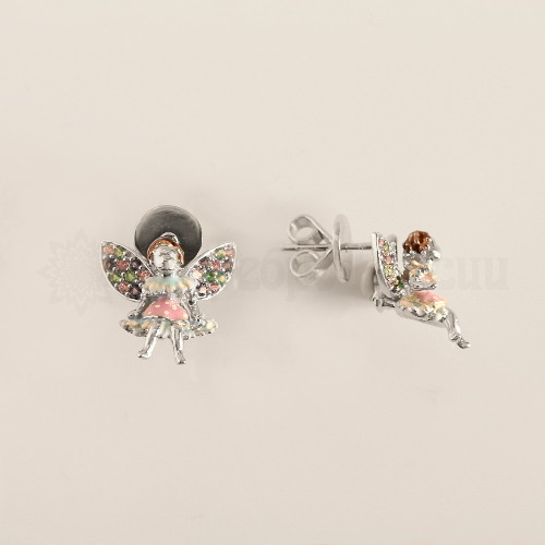 Совместные покупки Каменск-Уральский Детские аксессуары Украшения, бижутерия — Серьги-пусеты из серебра с эмалью и кубическим цирконием родированные