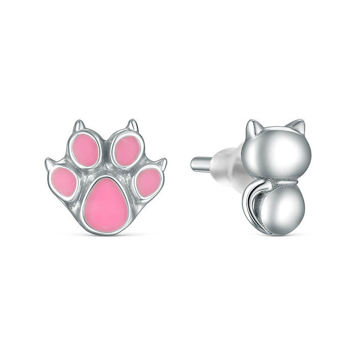 Совместные покупки Каменск-Уральский Ювелирные украшения и бижутерия Серьги — Серьги-пусеты из серебра с эмалью родированные - Лапка и Кошка 2110130