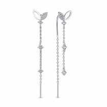 Серьги-пусеты из серебра с фианитами родированные 925 пробы 404012-955