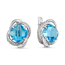 Серьги-пусеты из серебра с фианитами родированные 925 пробы с13-03