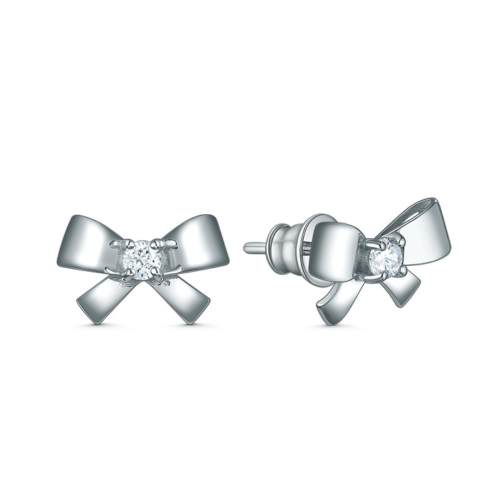 Совместные покупки Каменск-Уральский Ювелирные украшения и бижутерия Серьги — Серьги-пусеты из серебра с фианитом родированные - Банты 221-10-256-1р