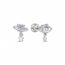Серьги-пусеты из серебра с куб.цирконием и позолотой родированные 925 пробы E090