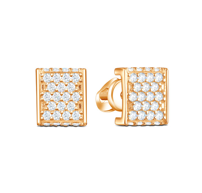 Совместные покупки Каменск-Уральский Ювелирные украшения и бижутерия Серьги — Серьги-пусеты из золочёного серебра с фианитами 925 пробы С-4705-З