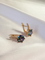 Серьги-пусеты из золочёного серебра с нат.сапфиром