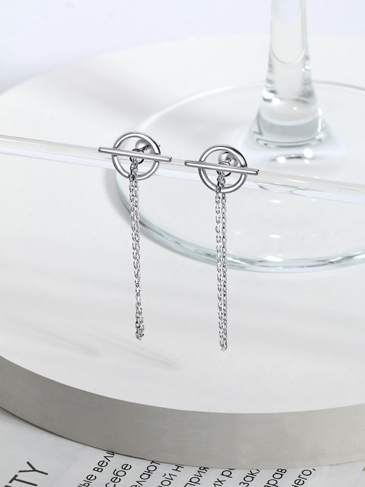 Серьги-пусеты с цепочками из серебра родированные 2-040р