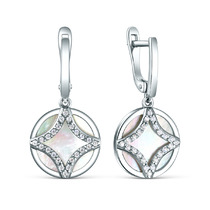 Серьги из серебра с перламутром и фианитами родированные 925 пробы С-4528-Р