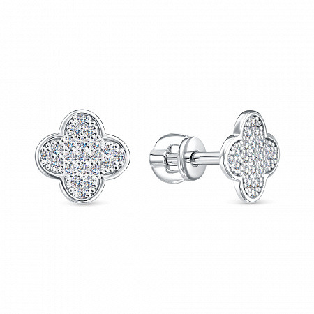 Серьги с фианитом родированные серебро 925*