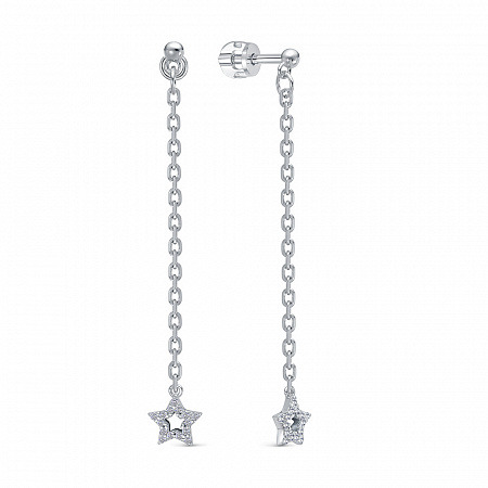 Серьги с фианитом родированные серебро 925*