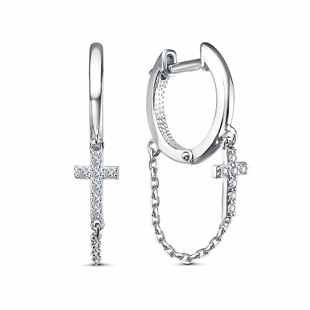 Серьги с фианитом родированные серебро 925*