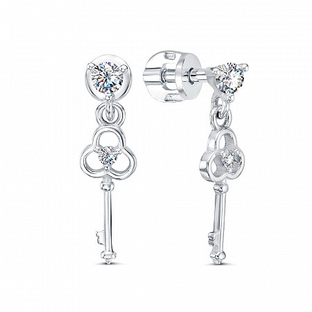 Серьги с фианитом родированные серебро 925*