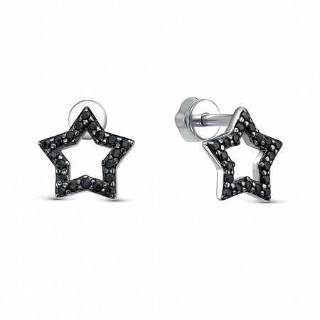 Серьги с фианитом родированные серебро 925*