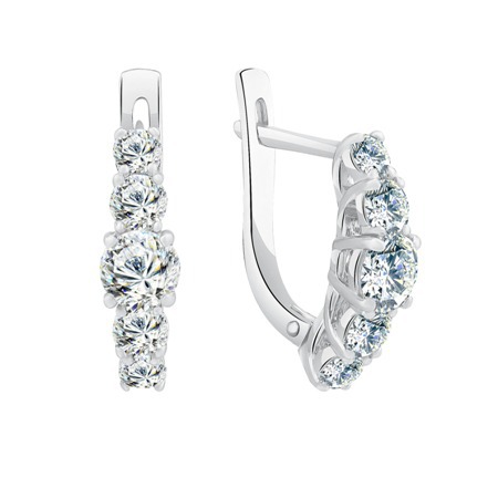 Серьги с фианитом родированные серебро 925*