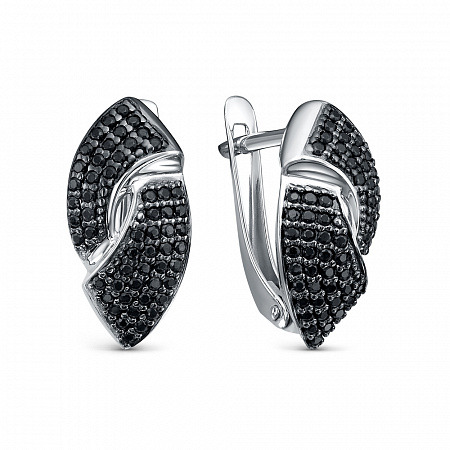 Серьги с фианитом родированные серебро 925*