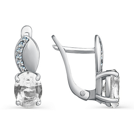 Серьги с фианитом родированные серебро 925*