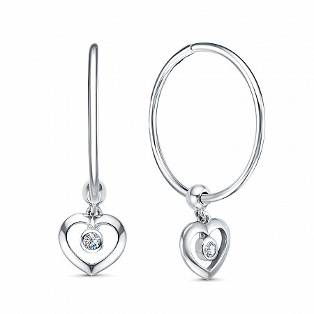 Серьги с фианитом родированные серебро 925*