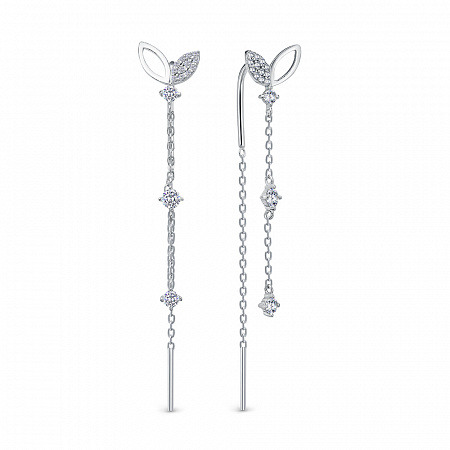 Серьги с фианитом родированные серебро 925*