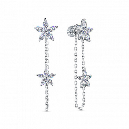 Серьги с фианитом родированные серебро 925*