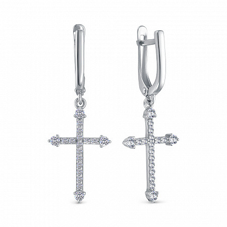 Серьги с фианитом родированные серебро 925*