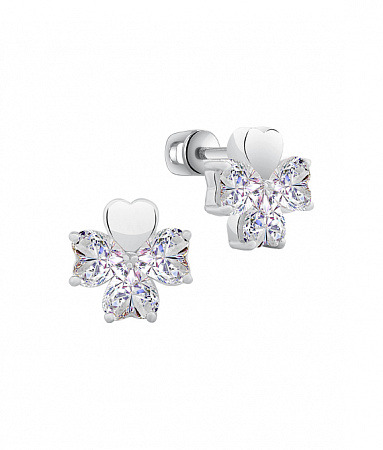 Серьги с фианитом родированные серебро 925*