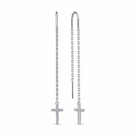 Серьги с фианитом родированные серебро 925*