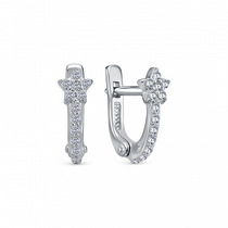Серьги из золочёного серебра с изумрудом и родированием С-3944зрс1133