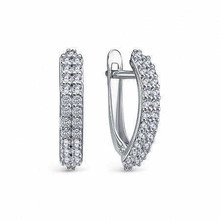 Серьги с фианитом родированные серебро 925*