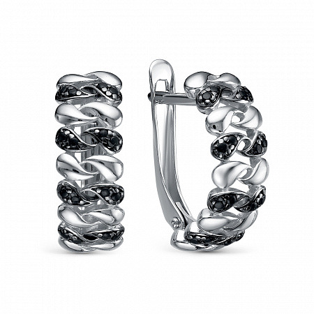 Серьги с фианитом родированные серебро 925*