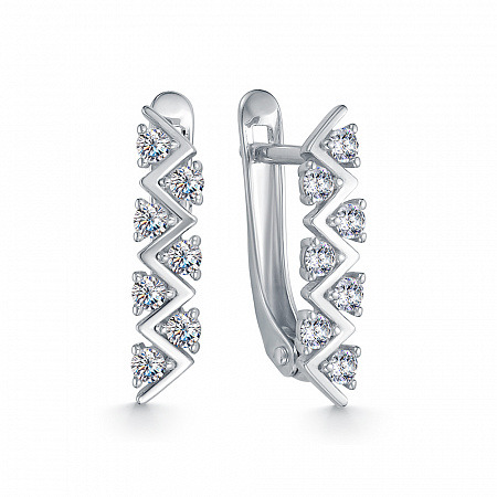 Серьги с фианитом родированные серебро 925*