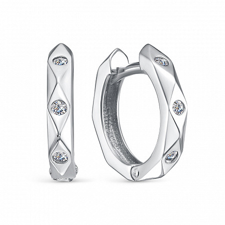 Серьги с фианитом родированные серебро 925*