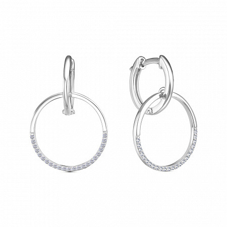 Серьги с фианитом родированные серебро 925*