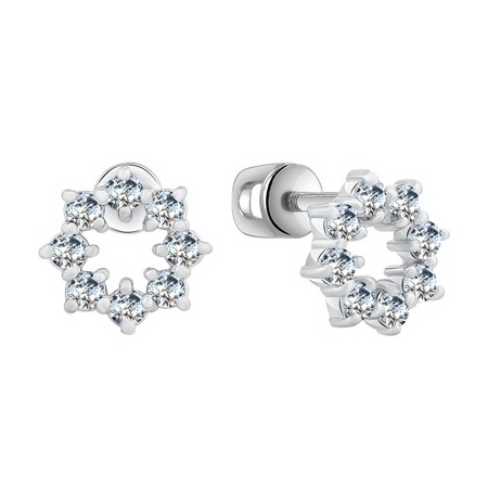 Серьги с фианитом родированные серебро 925*