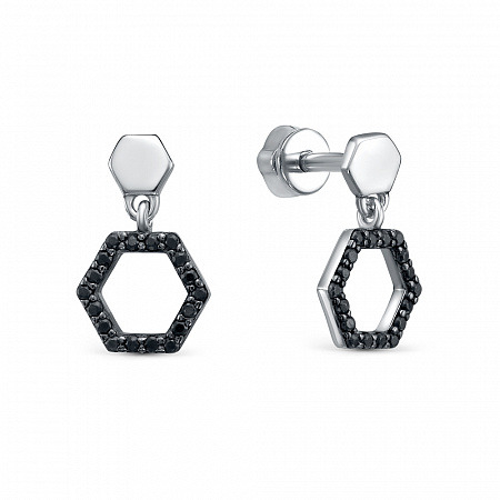 Серьги с фианитом родированные серебро 925*