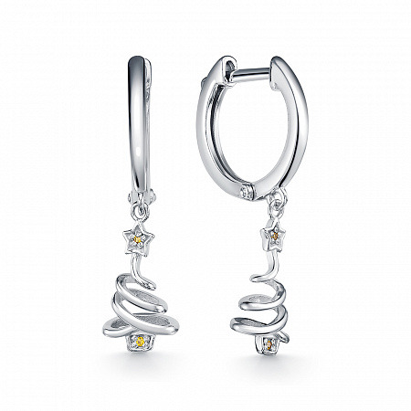 Серьги с фианитом родированные серебро 925*