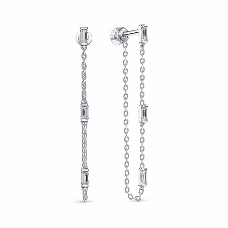 Серьги с фианитом родированные серебро 925*